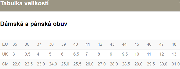 Velikosti | 37, 38, 39, 40, 41, 42, 43, 44, 45, 46, 47 |